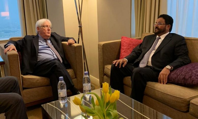 المحافظ العرادة يناقش مع غريفيث أوضاع النازحين في مأرب