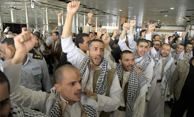 بالأسماء والصور ..هؤلاء هم الأسرى الحوثيين المفرج عنهم والصرخة هي موقفهم الأول في مطار صنعاء