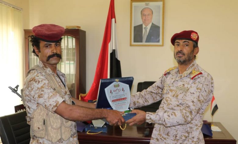 الفريق بن عزيز يكرم جنود نفذوا عملية عسكرية نوعية ضد المليشيات في جبهة نهم