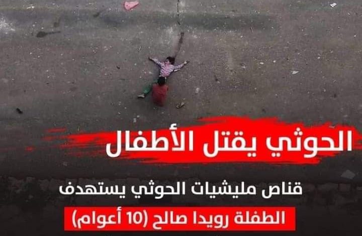 ونددت الشبكة في بيان صحافي، بجريمة قنص الطفلة رويدا صالح الفقري، في محافظة تعز، واعدتها جريمة ضد الإنسانية ترفضها كل الأعراف والقوانين الدولية والإنسانية.