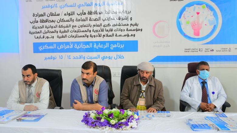 دشن وكيل محافظة مأرب للشؤون الادارية ،اليوم، ومعه مدير عام مستشفى كرى العام بمديرية الوادي الدكتور لؤي سليمان، برنامج الرعاية المجانية لامراض السكري ،بمناسبة اليوم العالمي للسكري والذي يصادف في الـ14 من نوفمبر من كل عام.