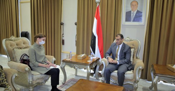 وقال الحضرمي خلال لقائه بنائب رئيس بعثة الأمم المتحدة لدعم اتفاق الحديدة دانيلا كروسلاك، أنه لا يمكن القبول باستمرار بقاء البعثة الاممية حبيسة بيد ميليشيا الحوثي الانقلابية