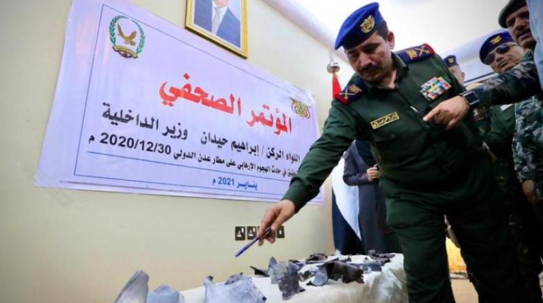 وقدم وزير الداخلية اللواء إبراهيم حيدان، في مؤتمر صحافي عقده اليوم بالعاصمة المؤقتة عدن، نتائج التحقيقيات الأولية متضمنة عروضا لمقاطع فيديو وبعض الصور التي تؤكد أن الصواريخ الثلاثة المستخدمة في الهجوم الإرهابي على مطار عدن توجد بها أرقام تسلسلية وهي مشابهة لصواريخ توجد بها أرقام مماثلة تعمل بتقنيات واحدة استهدفت بها الميليشيات الحوثية الإيرانية مواقع عسكرية ومدنية في محافظة مأرب والمملكة العربية السعودية.