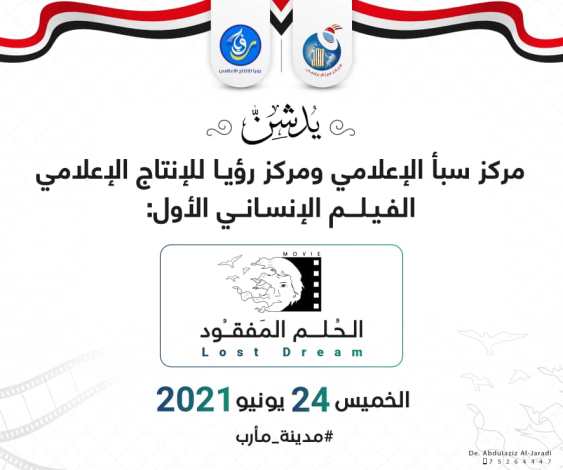 يدشن مركز سبأ الاعلامي ومركز رؤيا للانتاج الاعلامي غدا الخميس عرض فيلم (الحلم المفقود) الذي يسرد قصة طفل نزح شرته هجمات مليشيا الحوثي الصاروخية ثلاث مرات ويعكس جزءا من معاناة النازحين في مخيمات النزوح وخاصة الاطفال