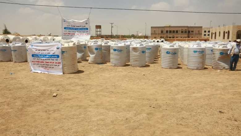 توزيع 500 خزان مياه للنازحين في 15 مخيم بمأرب