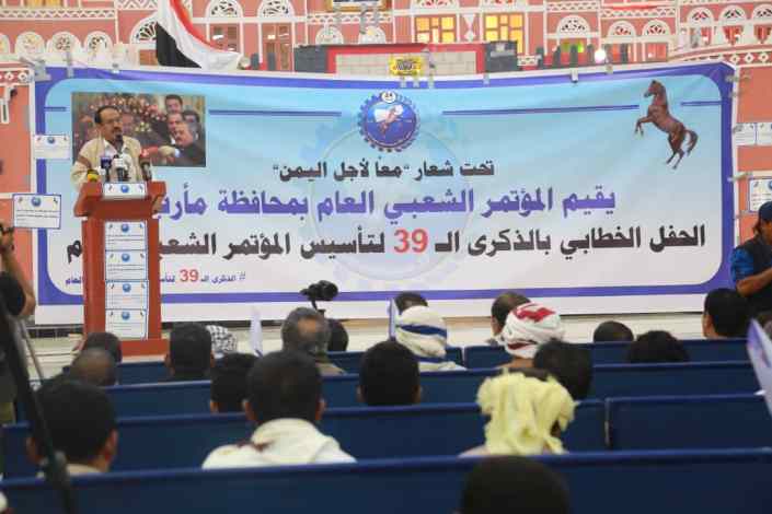 نظم حزب المؤتمر الشعبي العام بمحافظة مأرب اليوم، حفلا خطابيا احتفاءاً بالذكرى الـ 39 لتأسيس الحزب تحت شعار” معاً من أجل اليمن” بحضور نائب وزير التربية الدكتور علي العباب وقيادات السلطة المحلية بالمحافظة وقيادات فروع الاحزاب والتنظيمات السياسية ومنظمات المجتمع المدني والمشائح والأعيان في المحافظة.