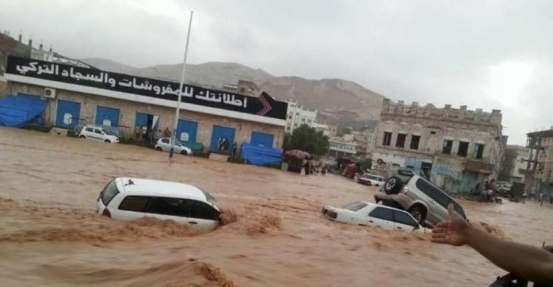 وفاة 6 أشخاص و 3 مفقودين في فيضانات اجتاحت محافظتي أبين شبوة