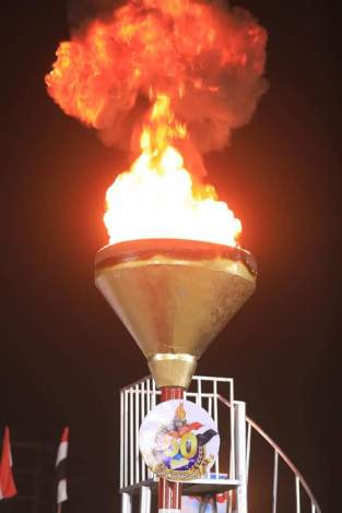 حيث اعتلى رئيس هيئة الأركان العامة قائد العمليات المشتركة الفريق الركن صغير بن عزيز ووزير الشباب والرياضة نائف البكري، منصة الشعلة، حاملين مشاعل الثورة والحرية، وقاما بإيقاد الشعلة الأم للعيد الـ 60 لثورة 26 سبتمبر المجيدة ، إيذاناً بانطلاق الأفراح الشعبية والجماهيرية والاحتفالات الرسمية بهذه الثورة التي يزداد ألقها عاماً بعد عام في نفوس الشعب، وتأكيداً على أن الثورة اليمنية ستظل متوهجة حتى تحقق كامل أهدافها السامية.