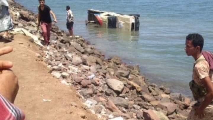 إنقلاب طقم انقلابي في البحر اثناء هروبه بعدن ( صورة)