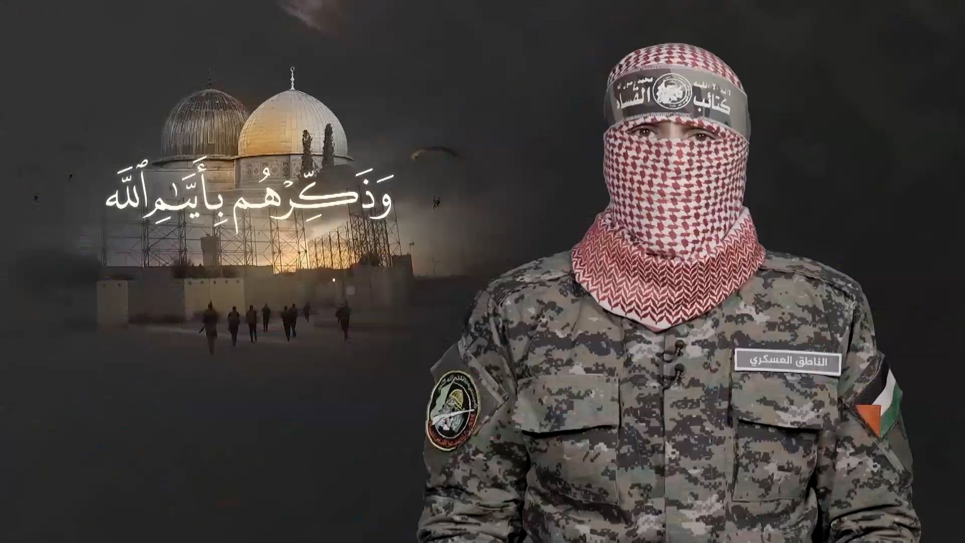 ألقى الناطق العسكري باسم كتائب عز الدين القسام أبو عبيدة مساء اليوم كلمة بمناسبة مرور عام على عملية طوفان الأقصى ضد الاحتلال الإسرائيلي ركز فيها على سبعة محاور رئيسية.